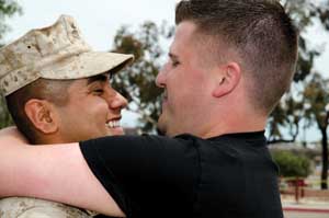 After a few minutes of emotional holding and kissing, Huston went anxiously down on one knee; looked up at Guerrero, who was dressed from head to toe in military fatigues; and produced an engagement ring and the time-honored phrase, “Will you marry me?”